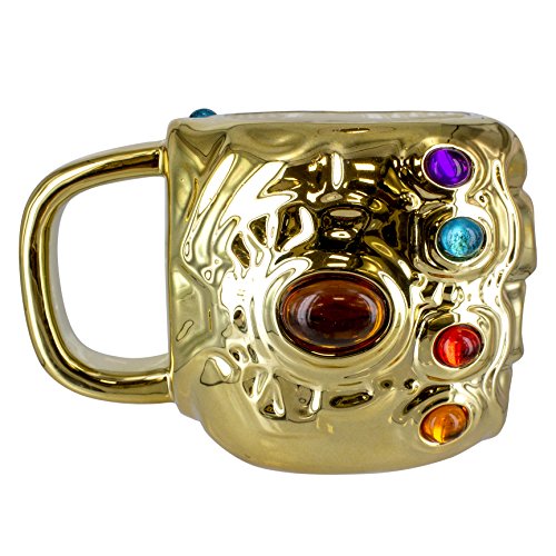 Marvel Avengers Infinity War Gauntlet Shaped Mug & Infinity Stones | Novelty Comic Book Thanos Gold Design Ceramic Tea Coffee Cup | Cool & Great for Office Or Home | Official Marvel Licensed Product